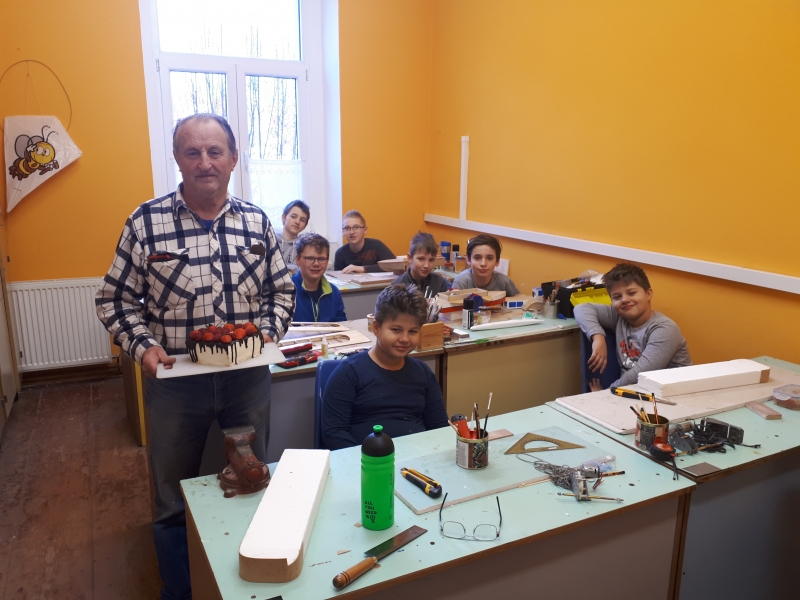 Jako každou neděli se naši mladí modeláři sešli v klubu a pokračovali v práci na svých modelech. Na dnešek jsme si připravili pro našeho „srdcaře“ vedoucího pana Nechanického malý dárek v podobě dortu za to, jak se vzorně stará o kluky a vede je kupředu. Děkujeme!